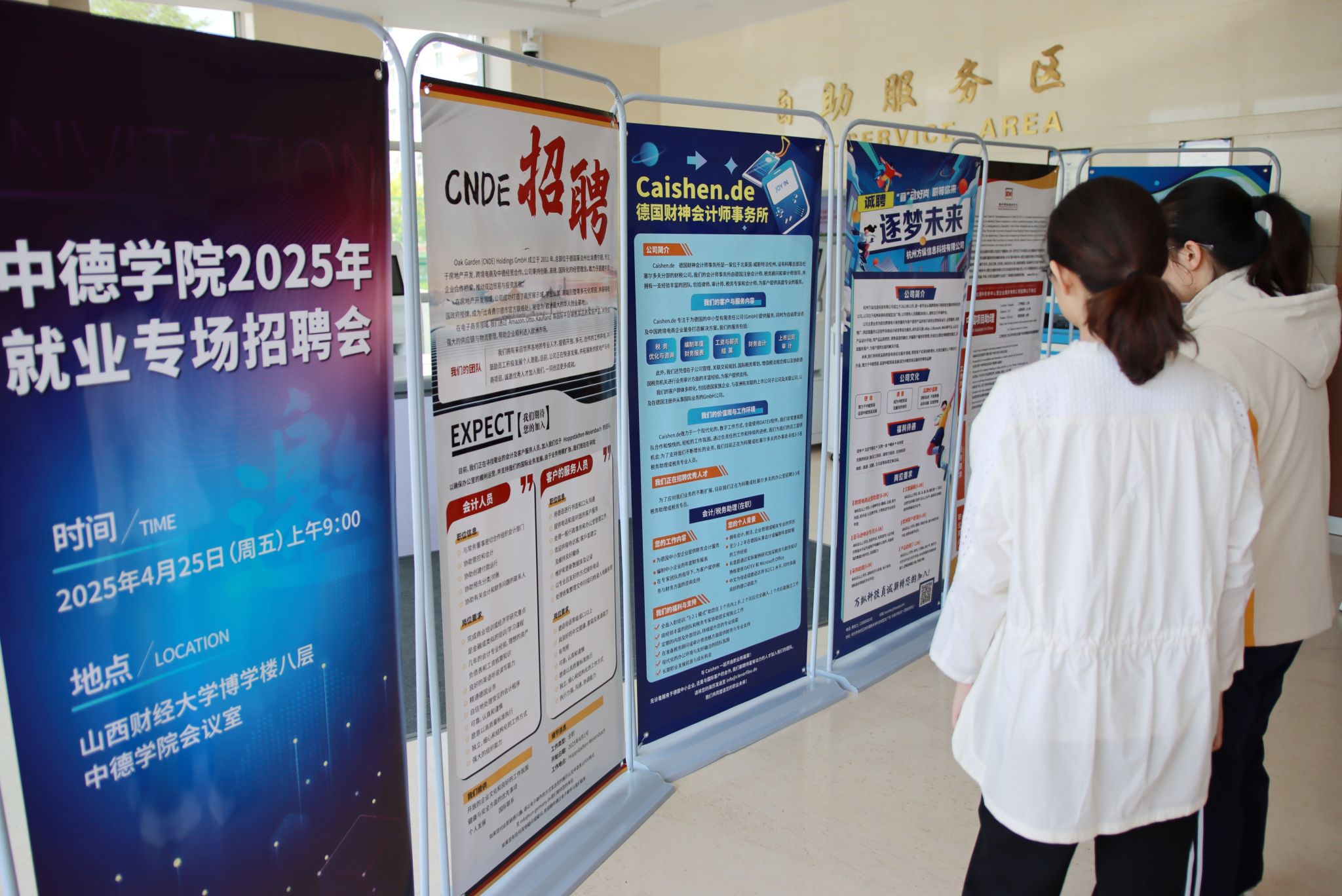 为深入贯彻落实国家稳就业、保就业决策部署,搭建毕业生与用人单位高效对接平台,做好2025年毕业生就业工作,4月25日,中德学院在博学楼举办了2025年就业专场招聘会。