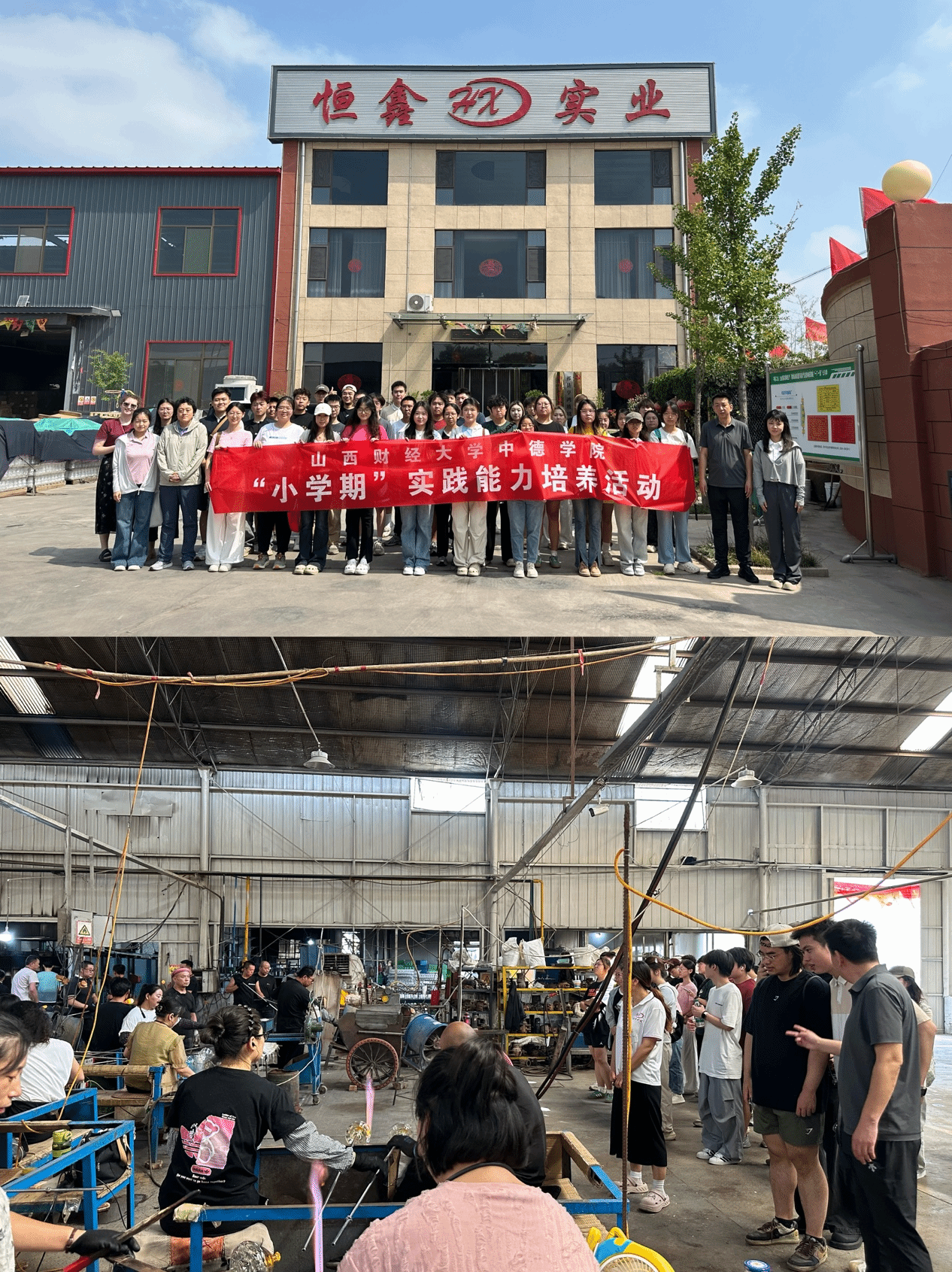 7月1日,学院党委副书记郭建军、副院长陈啸带队赴山西金恒鑫玻璃器皿有限公司参观学习。本次产-学-研活动以“透视匠心——探秘现代玻璃器皿制造的‘火’与‘智’”为主题,带领学生们开启了一场了解传统技艺的学习之旅,旨在让学生们近距离感受传统技艺与现代技术的完美融合。