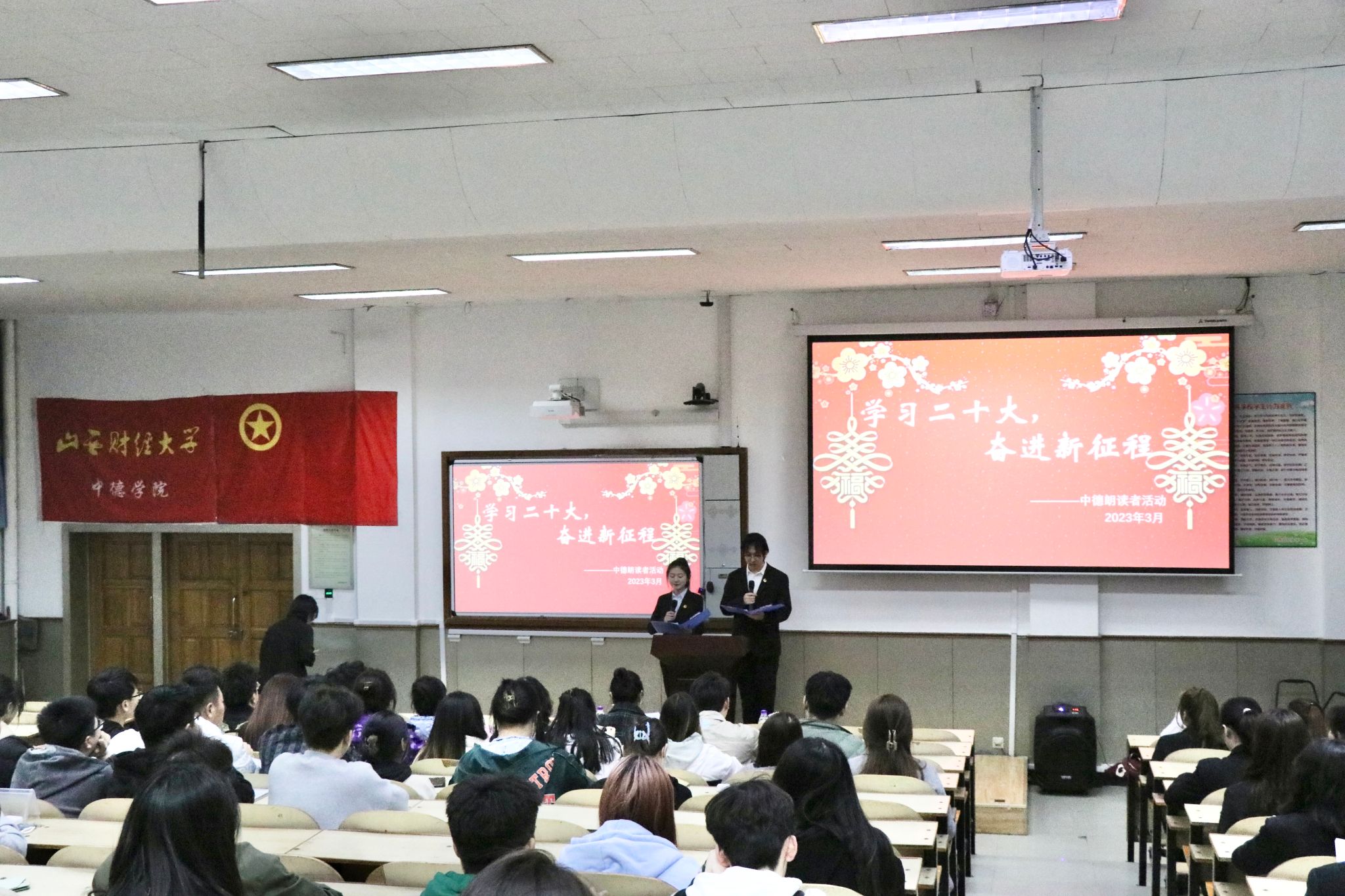 为深入学习宣传贯彻党的二十大精神,用习近平新时代中国特色社会主义思想武装青年,3月24日晚,中德学院在坞城校区慎行楼101举办以“学习二十大,奋进新征程”为主题的中德朗读者活动。