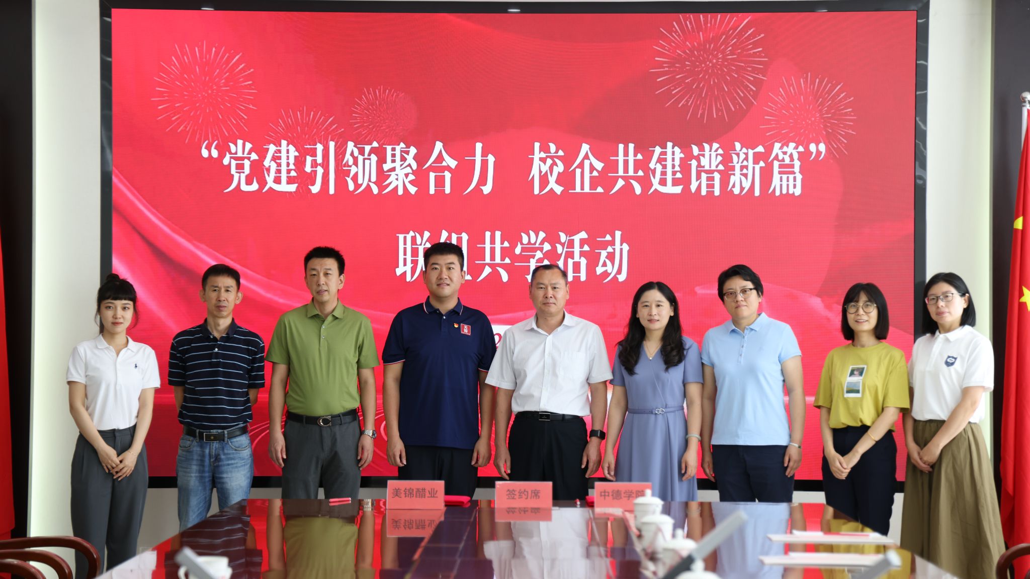 7月7日上午,中德学院在党委书记刘臣洲带领下赴我院杰出校友企业山西美锦醋业有限公司、山西黄河中药有限公司开展以“党建引领聚合力,校企共建谱新篇”为主题的联组共学、访企拓岗、实践教学基地建设等系列活动,史贞院长、郭建军副书记、陈嘨副院长等一同参加了活动。
