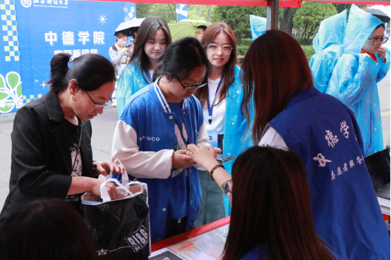 一切井然有序的美好背后,必然有着志愿者们的默默付出。无论刮风下雨,无论似火骄阳。他们的身影,永远在第一线奔跑,他们为新生们答疑解惑,他们高高举起手中的牌子不曾放下,他们从雨里又奔向骄阳,他们时刻维持着秩序,默默守护着每一个中德学子。