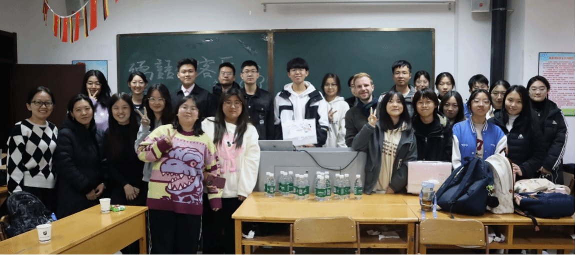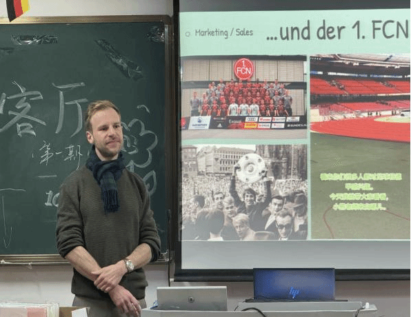 为丰富大学生的课余生活,使同学们在快乐轻松的氛围中学习德语、交流思想,开阔视野,激发大家学习德语的积极性,提升德语口语交流水平。10月27日,中德学院在坞城校区博学楼727教室举办了德语口语交流活动——“德语会客厅(第一期)”,学院教学副院长陈啸、副院长王秀娟、德方助教Moritz Zischler以及全体德语老师出席了本次活动。