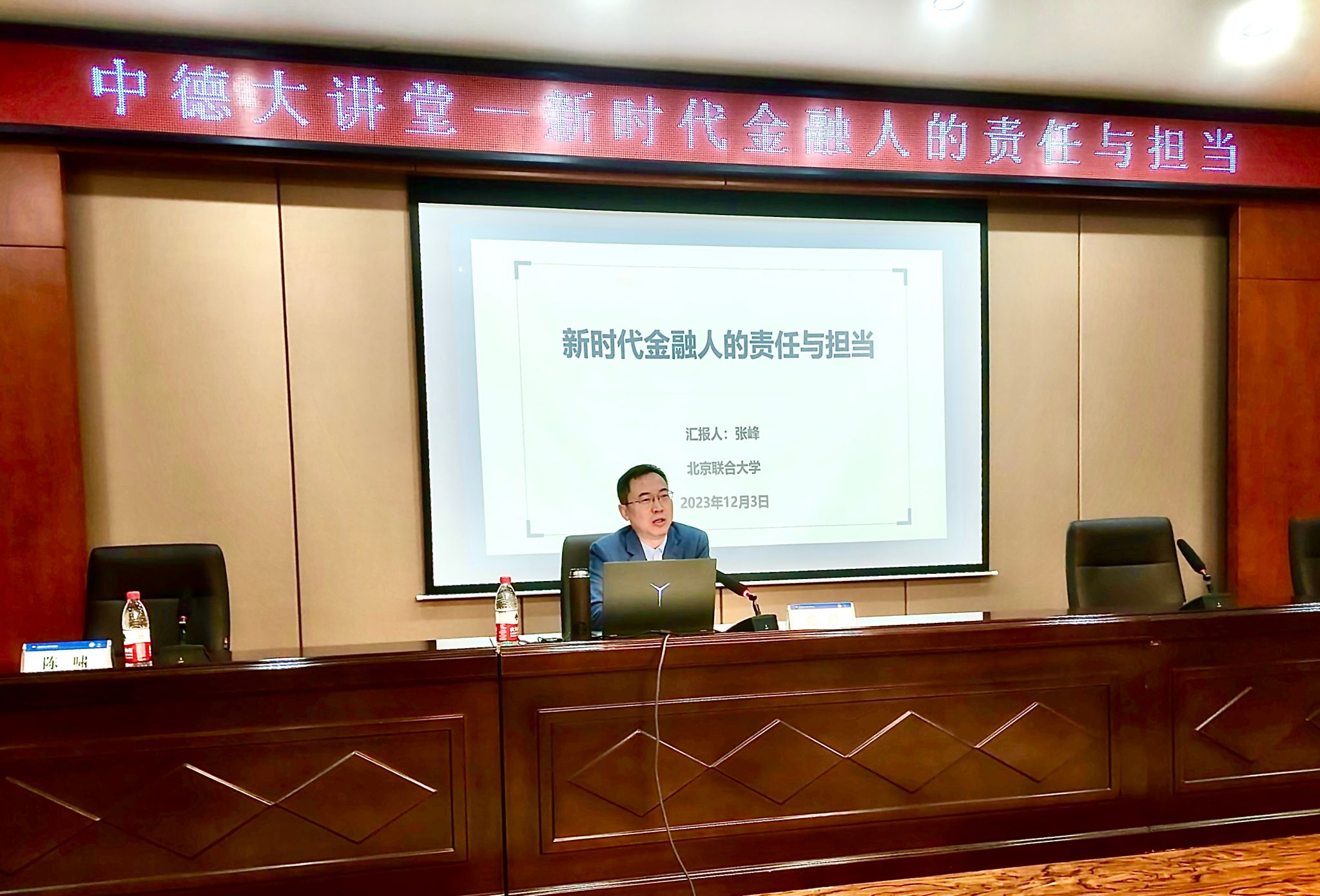 为提高学生对金融专业及金融行业发展前景的认识和了解,帮助学生更好的明确未来的学习目标和方向。12月3日上午,山西财经大学中德学院“中德大讲堂”在博学楼二楼报告厅举行。北京联合大学应用科技学院院长张峰教授受邀作专题报告。本次报告会由中德学院副院长陈啸主持、教学秘书刘晓蕙、辅导员余璐及中德学院金融学专业学生参加。