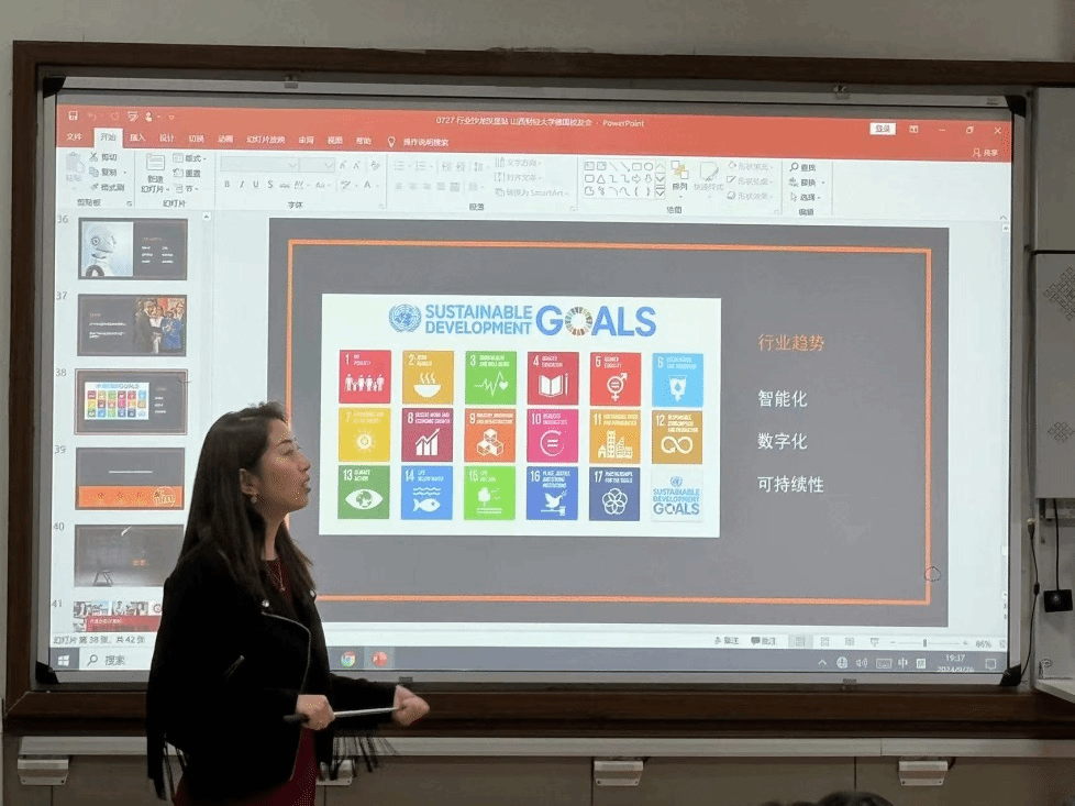 分享伊始,中德学院副院长王秀娟简要介绍了学院的发展历程和办学特色。她强调了中德学院校友资源对新生成长的重要性,希望通过本次活动搭建起校友与新生沟通的桥梁,将中德精神不断传承。