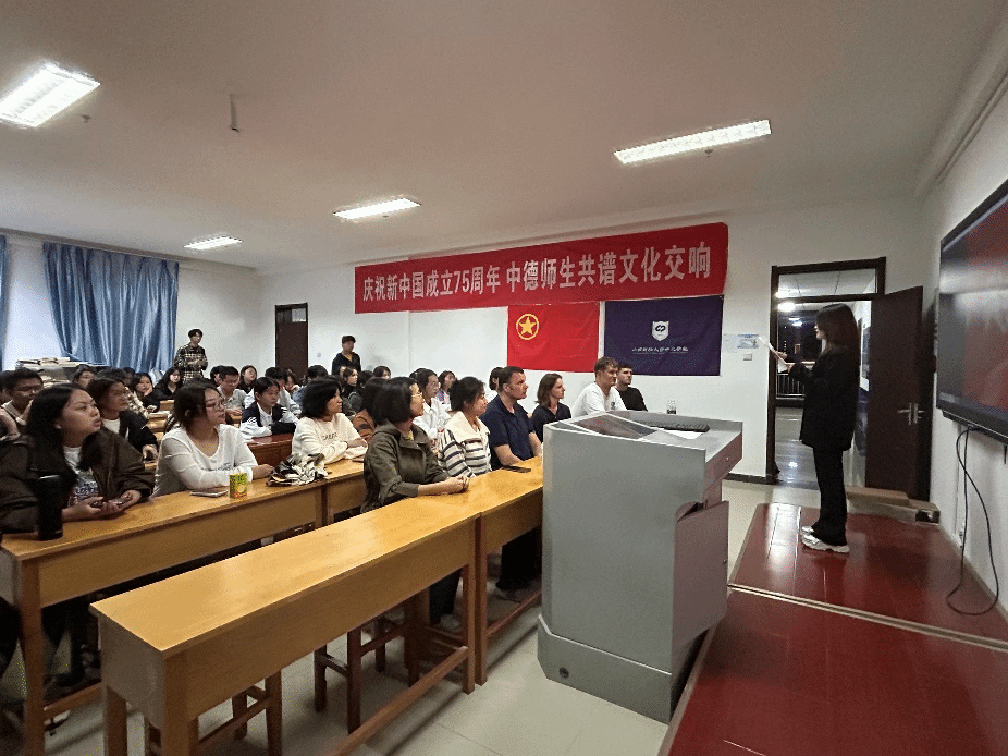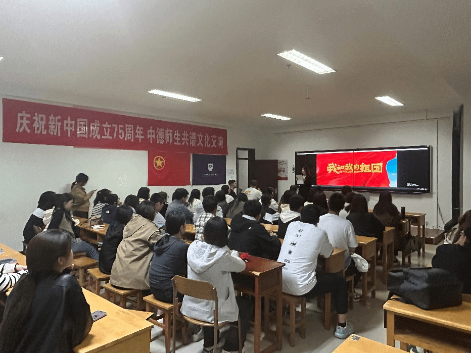 为庆祝新中国成立75周年,引导学生厚植爱国情怀、弘扬爱国主义精神,9月29日晚,中德学院在博学楼727开展“德语电影之夜——观影《我和我的祖国》”活动。德国教授和师生代表们共同参加此次活动。