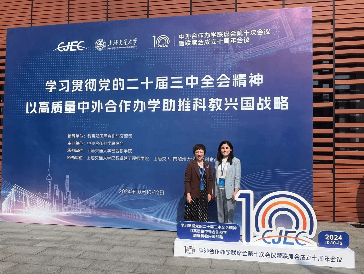 10月10日至12日,由教育部国际合作与交流司指导,中外合作办学联席会主办的中外合作办学联席会第十次会议在上海交通大学密西根学院举行。上海交通大学校长、中国科学院院士丁奎岭,教育部国际合作与交流司副司长贾鹏,上海市教育委员会副主任叶霖霖等领导出席会议,全国205家中外合作办学机构和项目的400余人参加了会议。中德学院院长史贞、副院长王秀娟应邀参加本次会议。