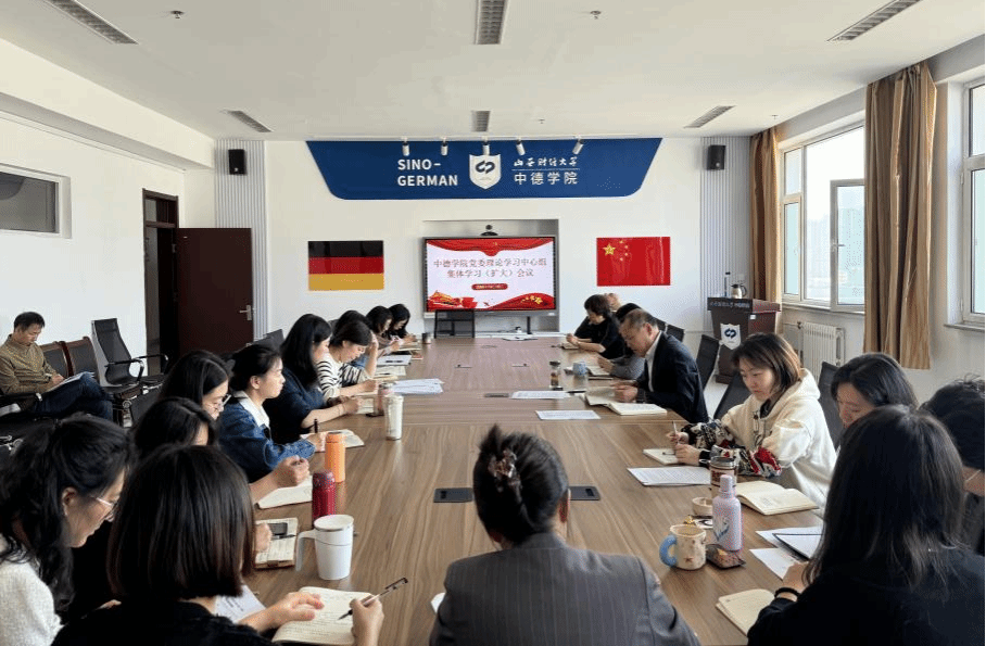 10月15日下午,中德学院党委举行2024年理论学习中心组第八次集体学习(扩大)会议。会议由学院党委书记刘臣洲主持,学院班子成员和全体教职工参加会议。