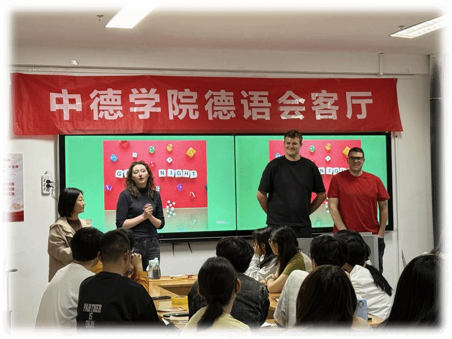 4月24日晚,博学楼727教室内灯光暖亮,中德学院第四期德语会客厅“Boardgame Night”主题活动在此拉开序幕。本次德语会客厅以趣味桌游为载体,借助丰富多样的游戏形式,引领学生深入领会德语语言运用和德国文化内涵在德语学习进程中的重要意义,助力语言与文化所蕴含的知识力量在学生学习中充分发挥作用。活动紧密贴合学院学生的德语学习实际情况,通过设置各类德语相关游戏,组织学生在游戏过程中积极运用德语交流互动,以此提升学生的德语语言水平,培养学生对德语学习的兴趣和热情,为学生营造良好的德语学习环境,促进学生全面发展。德方教师Stefan Eymann先生, Agieszka Soblio女士, Julian Leon Neuhaus先生以及德语教师到场,与同学们共同沉浸于德语语言与文化的趣味互动中。