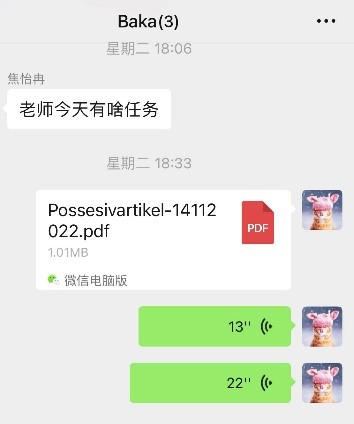 线上授课由于无法进行实时交流,对学生的口语水平影响较大。为了提高学生的口语能力,我在早自习的时候给学生放学习视频,让学生跟着视频跟读。每天晚自习都给学生留口语作业,要求学生“口语打卡”,在微信群中完成口语朗读作业,并给学生纠正发音。很多学生学习兴趣很高,在完全正确朗读得到点赞之后,发朋友圈进行“炫耀”。