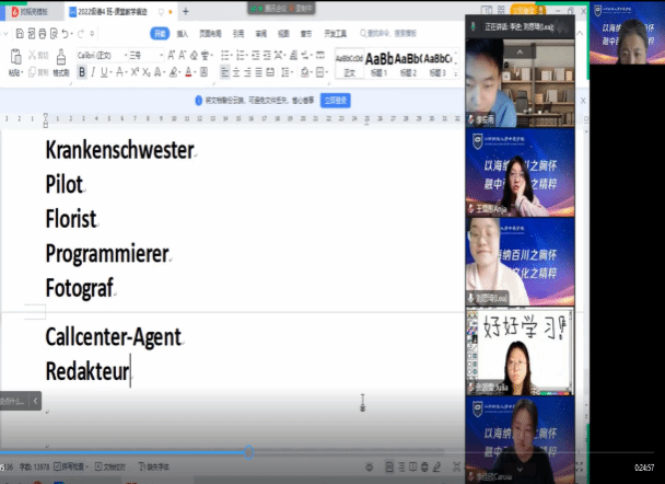 以上即是中德学院德语4班第17教学周的教学情况,特此记录。(德语教研室 李进供稿)