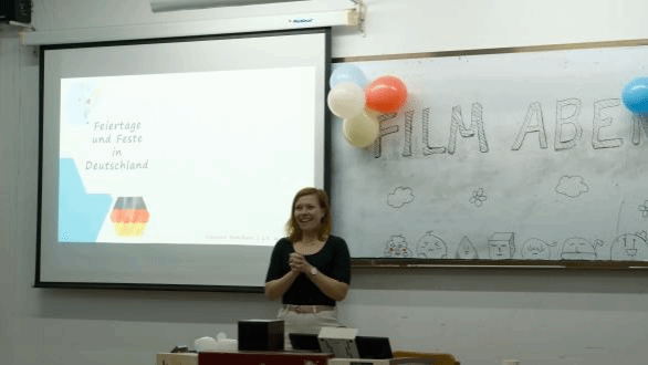 为了让同学们能够学习节日相关的德语词汇,本次电影之夜还精心设计了“击鼓传花”和“拼单词”等多个寓教于乐的小游戏。在游戏中,同学们不仅锻炼了自己的语言能力和反应速度,还增进了对中德文化的了解,提升了用德语介绍中国传统文化的能力。德国外教们也积极参与其中,了解到了不少关于我国的传统习俗。