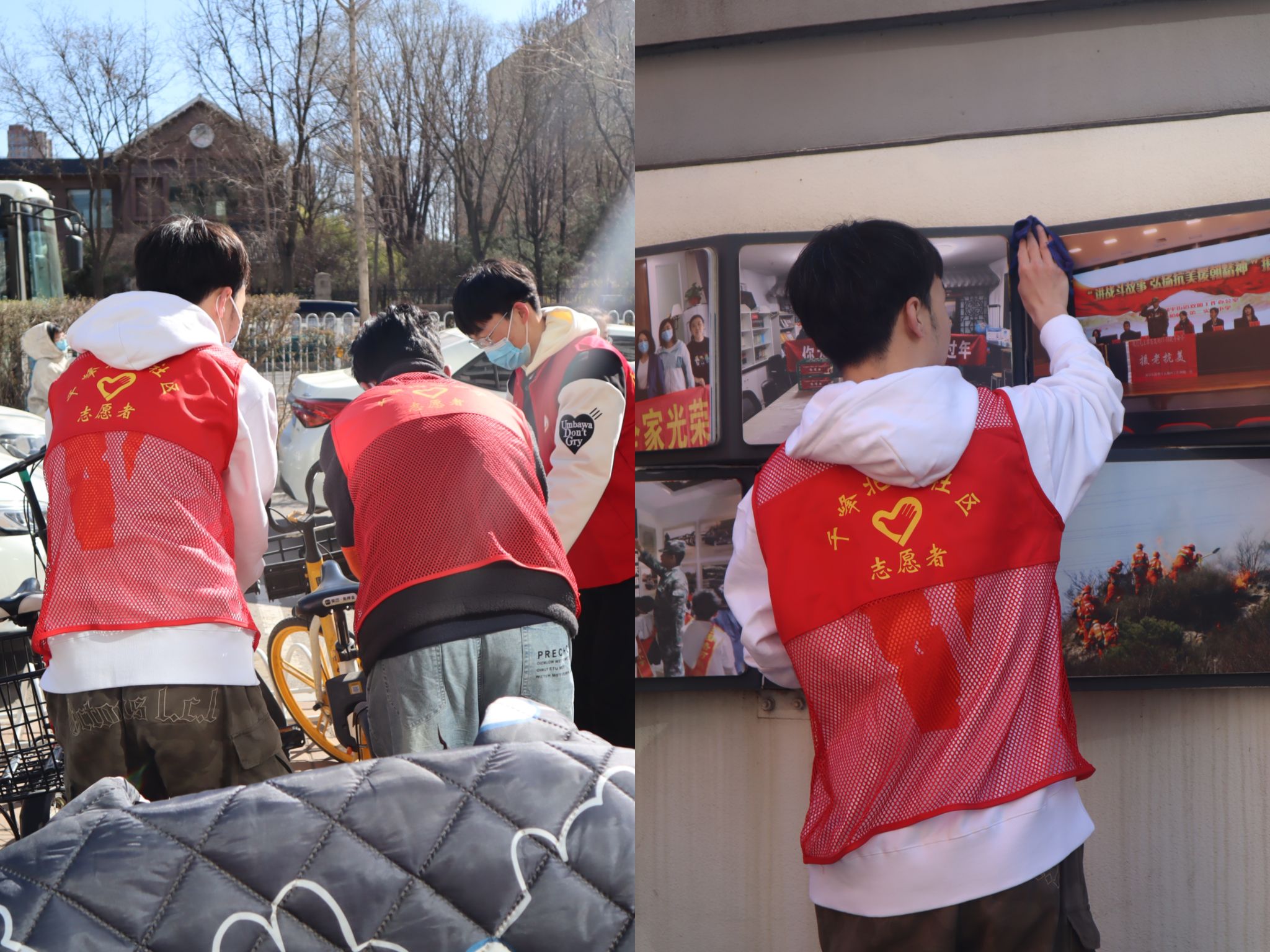 春风拂面,爱心涌动。我院志愿者与社区干部们一起参与到创城志愿行动中,志愿者们对辖区街巷环境卫生进行了清理、对公益广告牌进行了擦拭、对乱停车乱放车现象进行了整治、对随手丢烟头等不文明现象进行了捡拾和劝阻,倡导文明新风尚,营造干净整洁的生活环境。志愿者们以此次活动为契机,吹响了创城有我,志愿有我的集结号,呼吁更多的志愿者参与到创城中来,形成人人为我,我为人人的良好氛围。